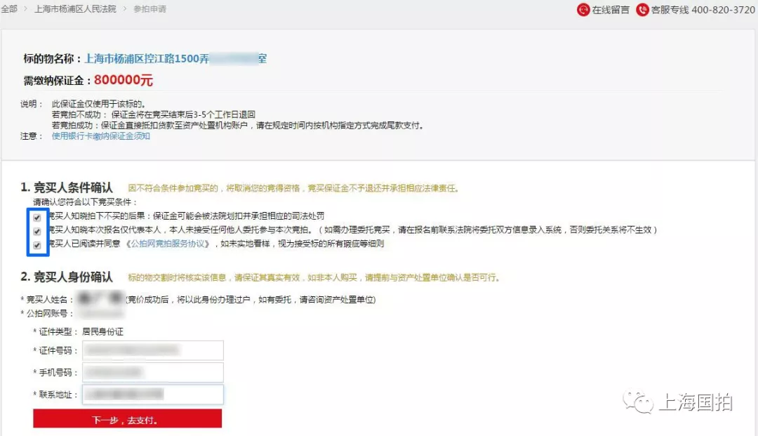PS: 核对标的信息,确认竞买条件,填写竞买人信息
