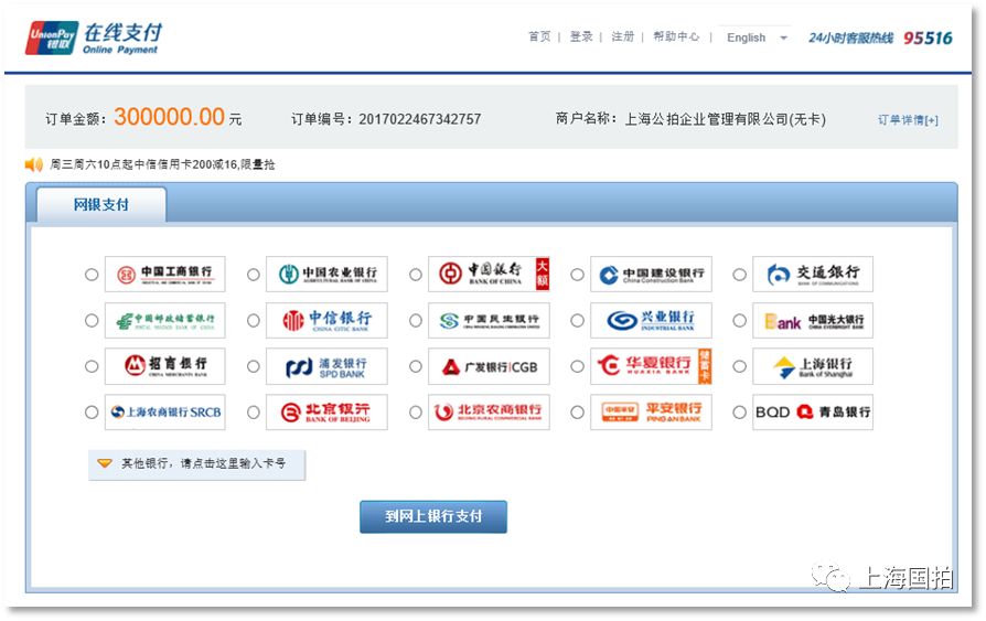 进入银联支付网关后,您可以选择您所持卡的种类进行在线支付。