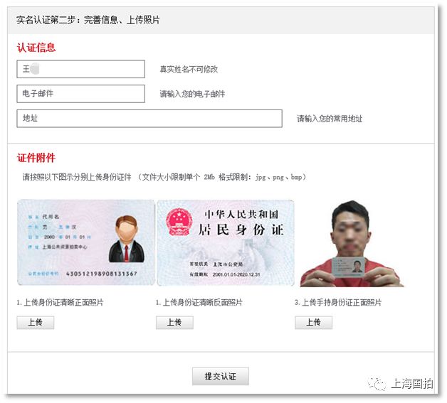 根据页面提示输入电子邮件与常用地址,上传身份证正反面照片以及手持身份证照片后,实名认证就完成了。